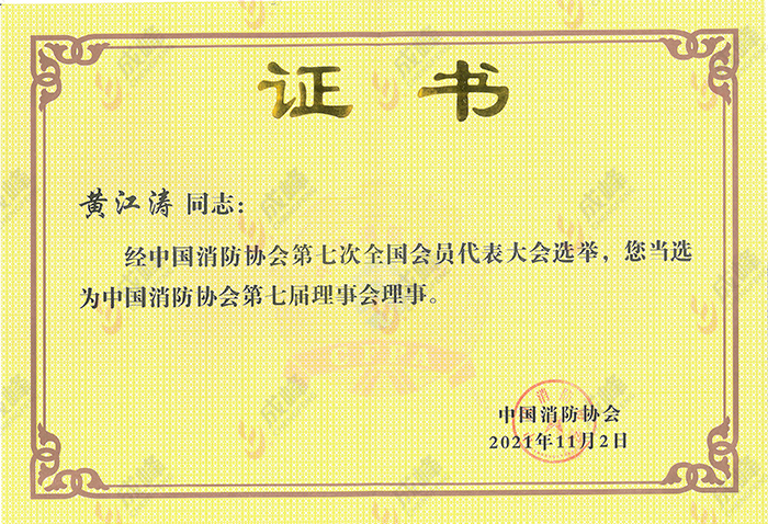 中国消防协会第七届理事会理事证书